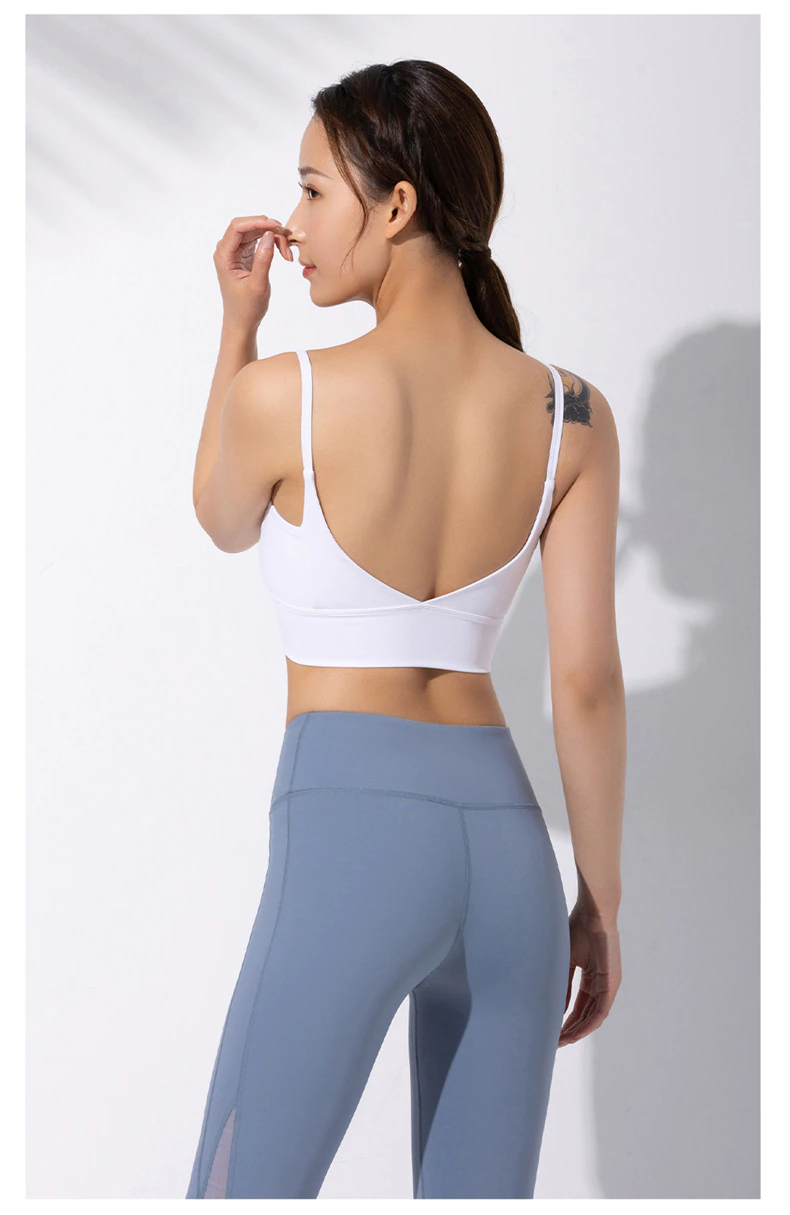 14402.0₩ |스포츠 브래지어 여자 섹시한 아크 Neckline 얇은 어깨 끈 체육관 훈련 요가 조끼 아름다